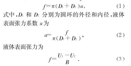 式中,D1和D2分別為圓環的外徑和內徑,液體表面張力系數α為