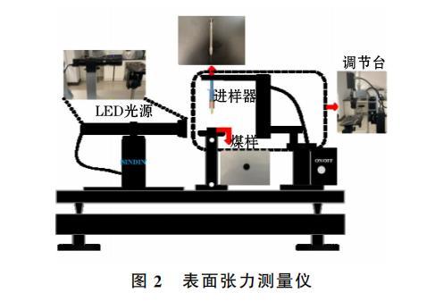 液體從噴嘴噴出初始階段,表面張力會對射流霧化產生阻礙作用,所以表面張力對噴霧場霧化性能有重要影響。測量表面張力時,調節樣品臺和光源在同一高度,在進樣器中裝入1mL待測礦井水后滴至測量臺,待測溶液與測量臺接觸瞬間,開始捕捉液滴形態。測量完畢后,利用數據處理系統處理試驗數據與圖像。