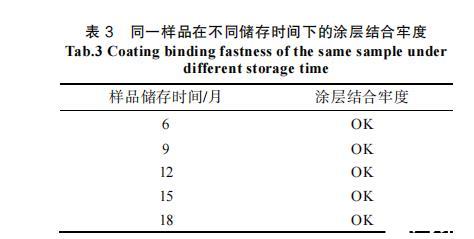表3同一樣品在不同儲存時間下的涂層結合牢度