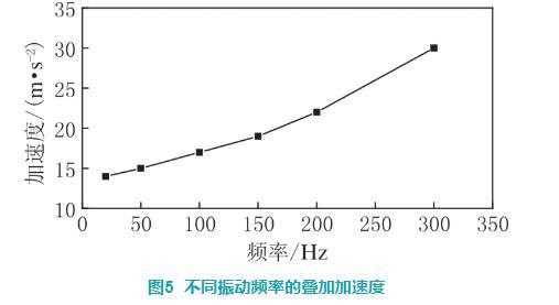 車輛在行駛中傳遞到油水分離器上的振動主要集中在10~340 Hz,沿X方向的主要振動頻率為20、45、100、200、300 Hz,沿Y方向的主要振動頻率為20、50、100、175、203、300 Hz,沿Z方向的主要振動頻率為20、100 Hz,加速度均大于8 m/s2,沿Y方向100 Hz的振動加速度最大約為39.2 m/s2。為了方便對試驗(yàn)結(jié)果進(jìn)行比較分析,最終選擇在頻率為20、50、100、150、200、300 Hz,加速度為39.2 m/s2的條件下進(jìn)行試驗(yàn)。